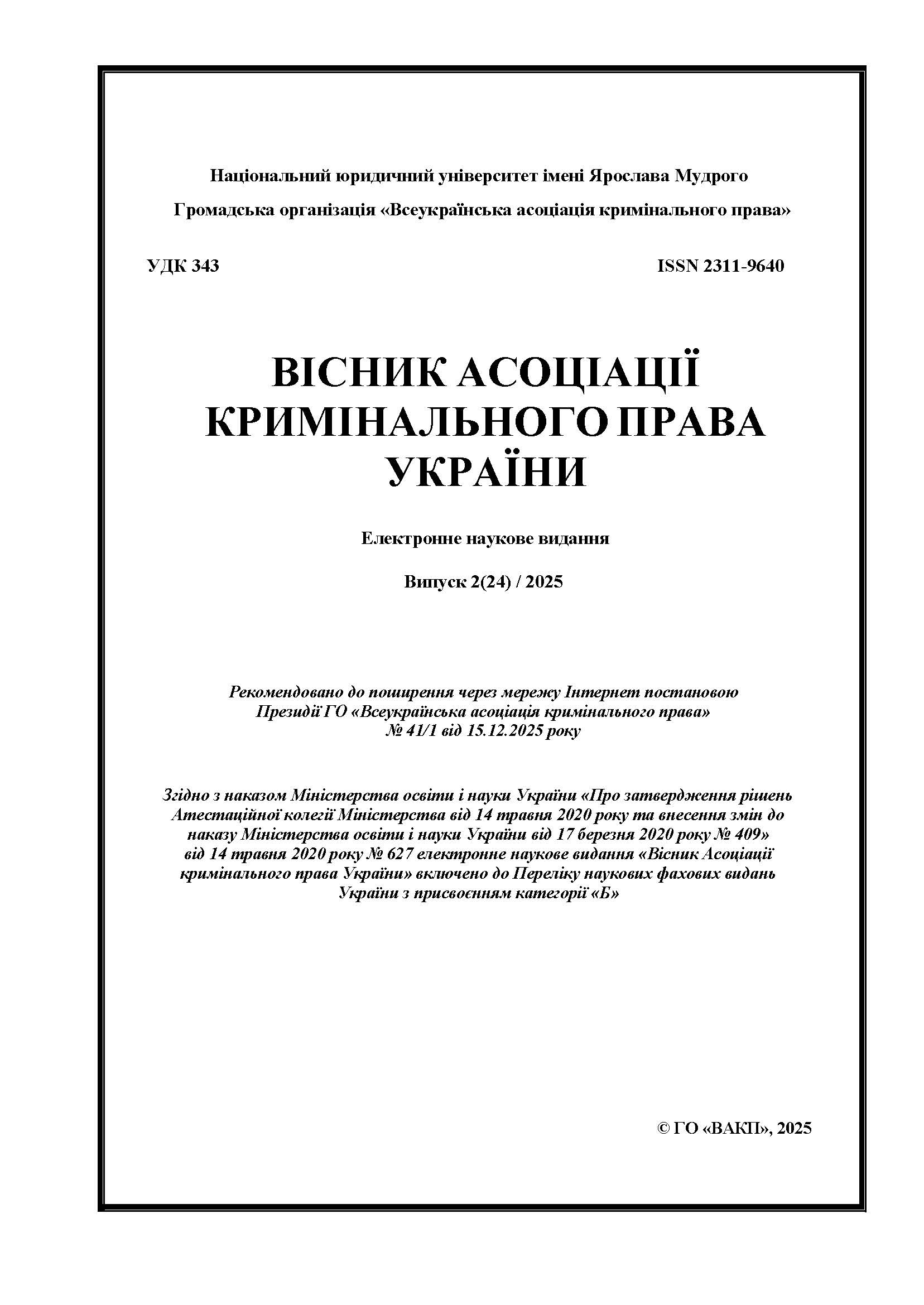 Авторське право (c) 2025 Вісник асоціації кримінального права України